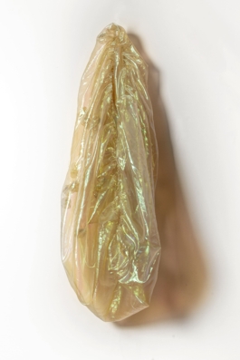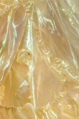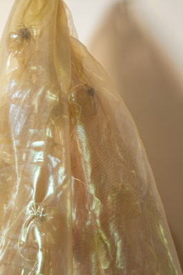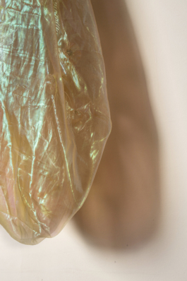 2025, Textil tornasolado y tanza, 130 × 50 × 50 cm aprox.